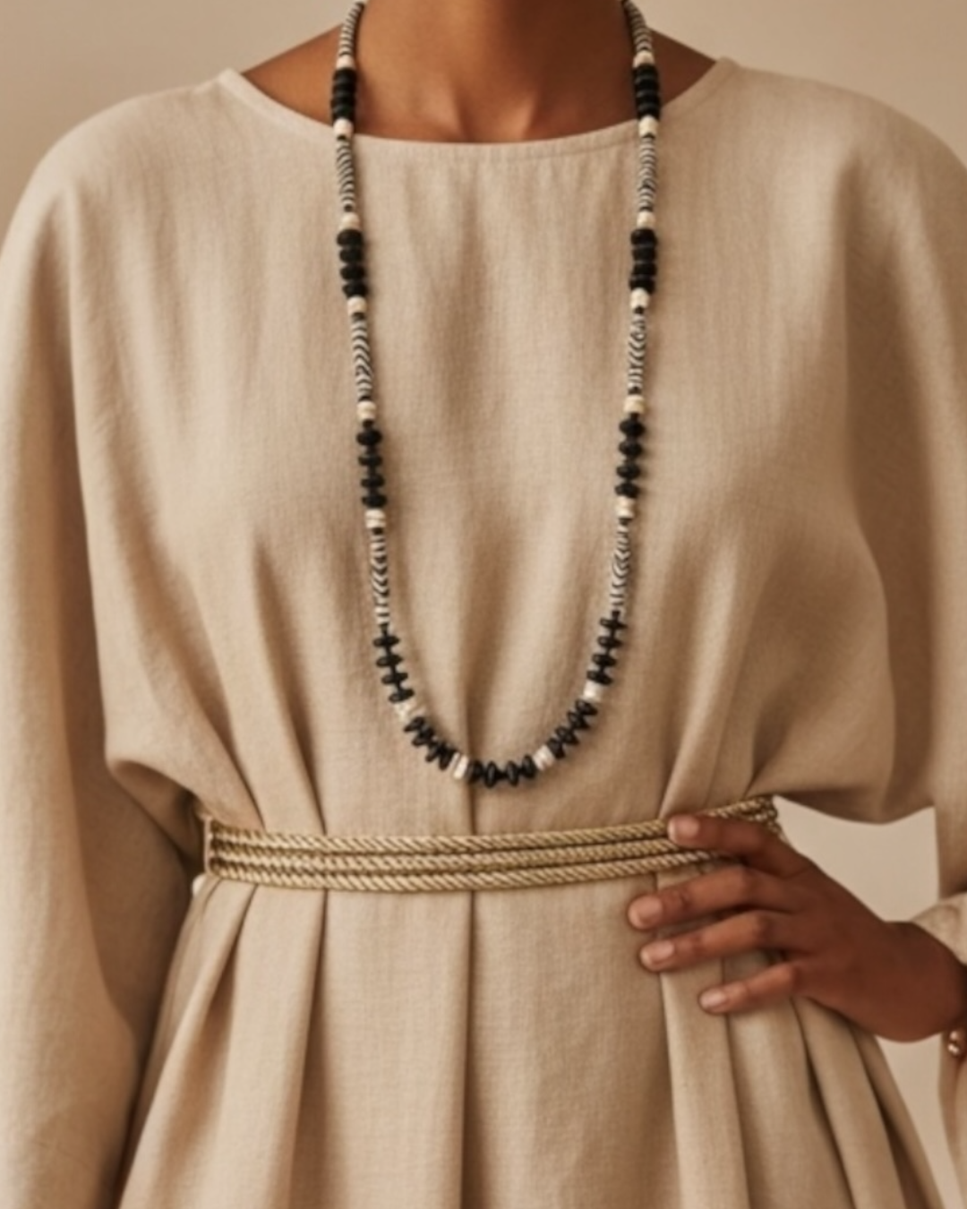 TRIBAL RHYTHM is a powerful handcrafted necklace inspired by African tribal heritage and the rhythmic harmony found in natural patterns.